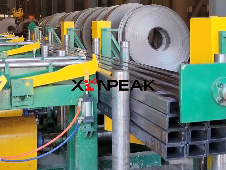 The square tube palletizer is an automated equipment system that integrates automatic collection, sorting, transportation, and palletizing functions. Its working principle follows an efficient and continuous process. Firstly, the square tube cut to length by the flying saw is horizontally transported to the predetermined position by the conveyor belt, and the front end collision plate serves as a mechanical limit to accurately stop the steel pipe. Subsequently, the picking rack lifts the stopped steel pipes from the conveyor belt and transfers them to the starting work platform of the palletizer. After the steel pipes enter the stacking area, the baffle device driven by the chain starts to work, cyclically pushing a single steel pipe forward and arranging it in sequence on the platform. When the accumulation of steel pipes reaches the preset number of single layers, the key fork arm device is activated, inserted under the steel pipe, and the entire layer of steel pipes is steadily lifted. Then, the fork arm carries the layer of steel pipes horizontally to the stacking area, and stacks them in layers according to the predetermined program to complete one layer of stacking. After completing each stack, the equipment will activate the leveling device to push the end face of the entire stack of steel pipes flat from the side, ensuring that the stack shape is neat and the edges are aligned. The whole package of steel pipes formed by palletizing is finally received and transported out by the whole package conveyor belt, and then transferred to the subsequent bundling and lifting area to prepare for storage or shipment.